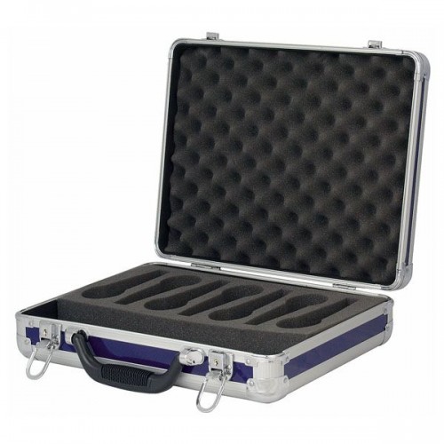 Flightcase for 7 microphones. With preformed foam and addtional accessory-space.
